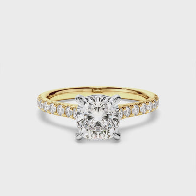Cushion Cut Diamond Solitaire Engagement Ring With Diamond Sides