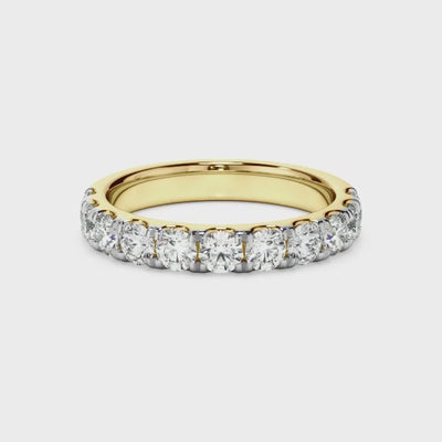 This stunning custom-made wedding ring features a half band of round brilliant cut diamonds set on an 18ct gold or platinum band. Exuding fluidity in its line work, and boasting an elegant silhouette, as with all the pieces in our Bespoke Collection, this piece is made especially for you.
