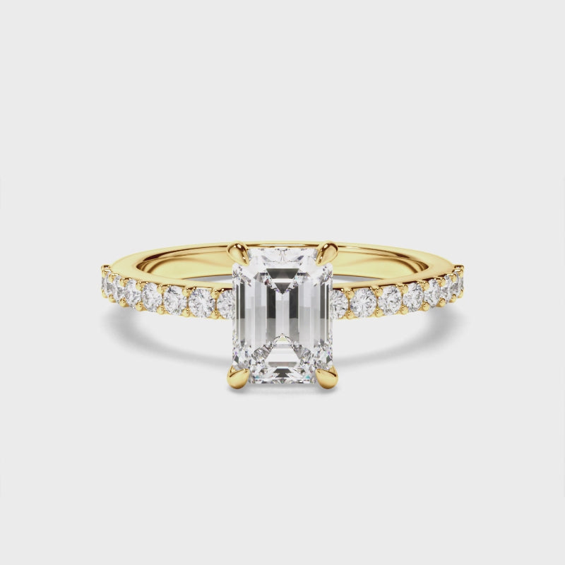 Emerald Cut Diamond Engagement Ring with Diamond Sides