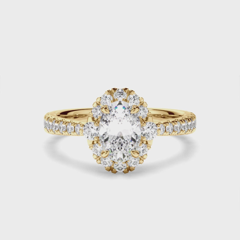 Oval Cut Diamond Halo Engagement Ring with Diamond Sides
