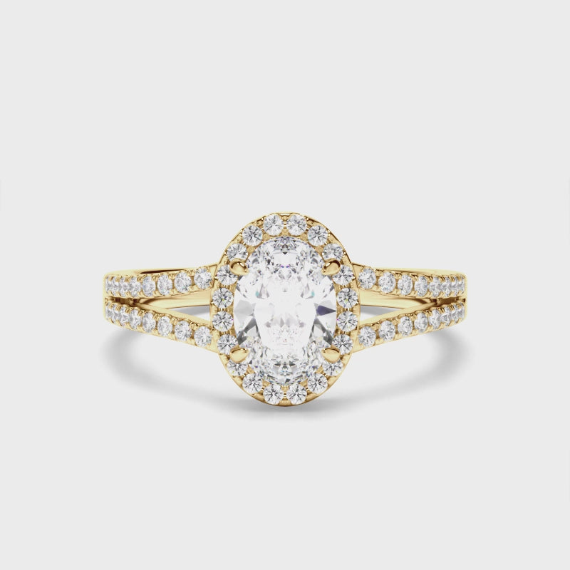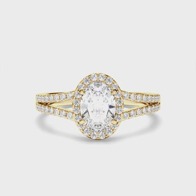 Oval Cut Diamond Halo Engagement Ring with Pave Sides