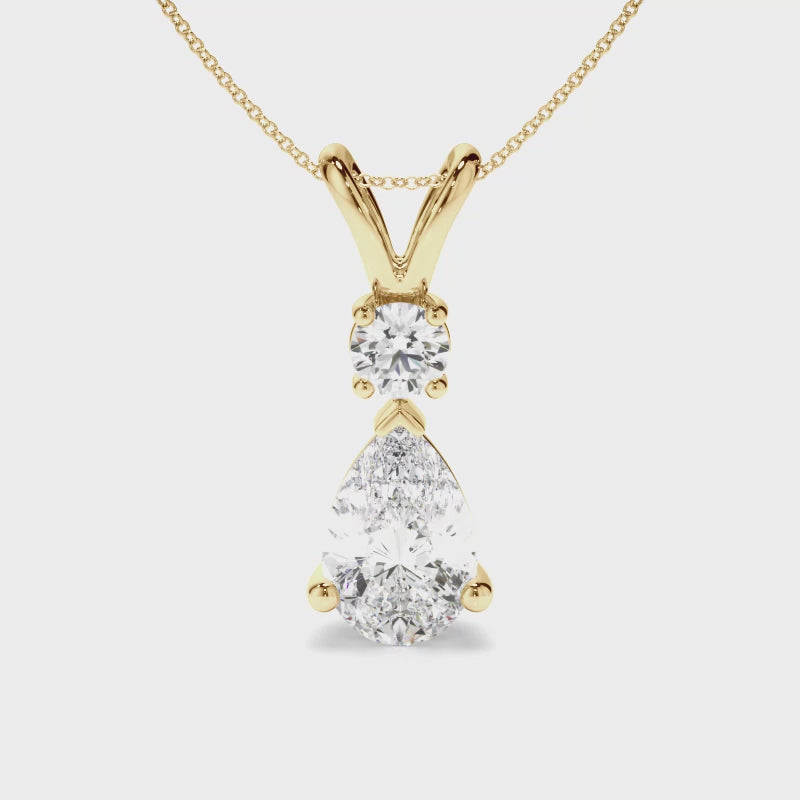 Pear & Round Brilliant Cut Diamond Drop Pendant