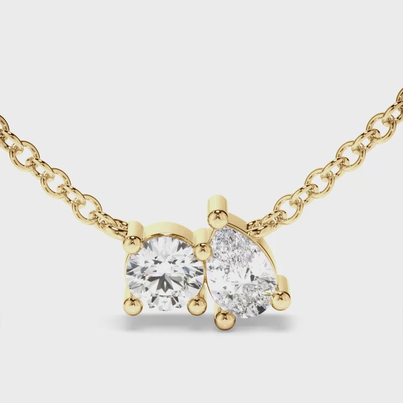 Round Brilliant & Pear Cut Diamond Toi et Moi Necklet