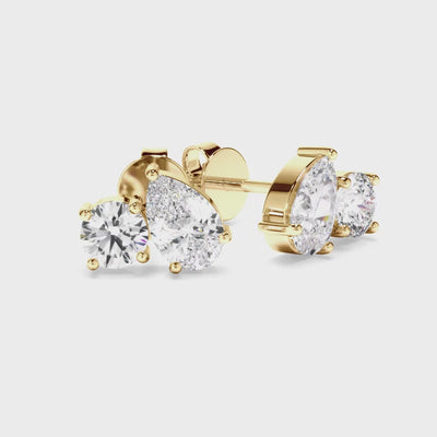 Pear & Round Brilliant Cut Diamond Toi et Moi Stud Earrings