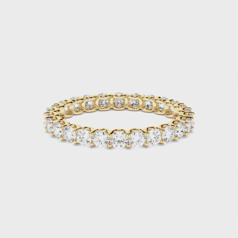 This stunning custom-made eternity ring features a full band of round brilliant cut diamonds set on an 18ct gold or platinum band. Exuding fluidity in its line work, and boasting an elegant silhouette, as with all the pieces in our Bespoke Collection, this piece is made especially for you.
