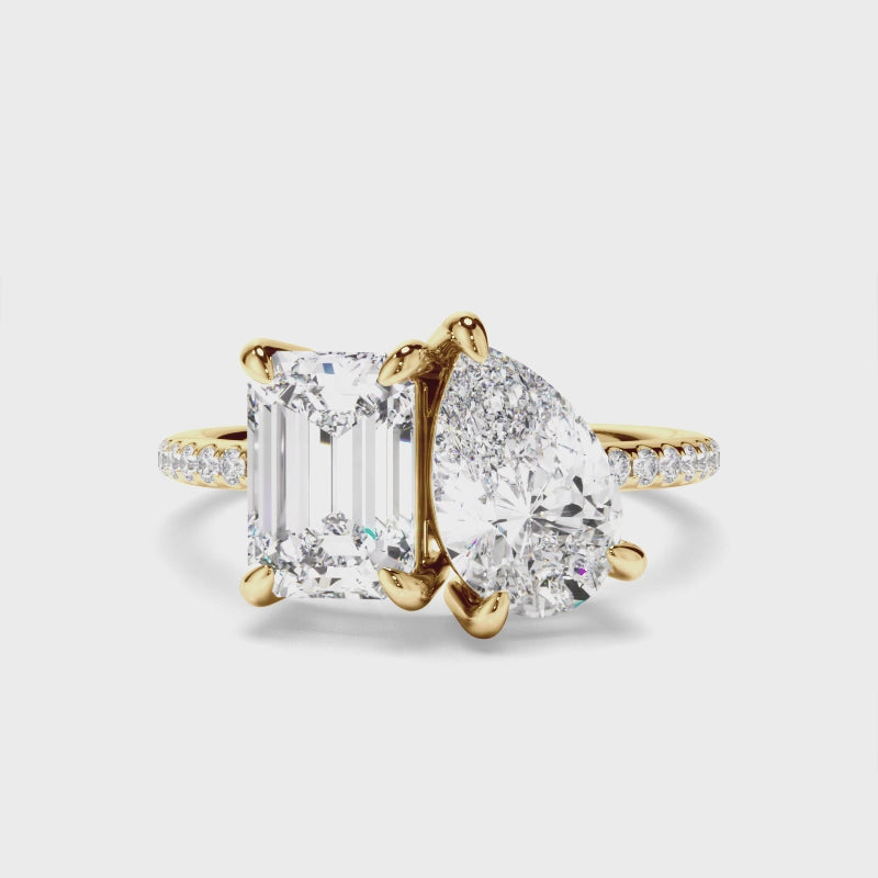Emerald & Pear Cut Diamond Toi et Moi Engagement Ring