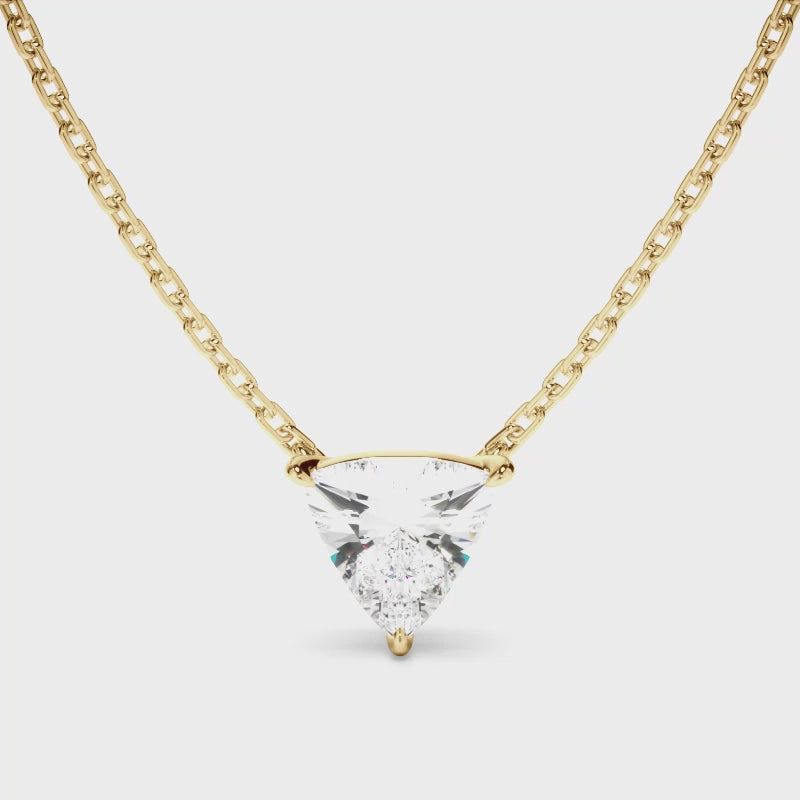 This elegant trilliant cut diamond necklet includes a 45cm 18ct gold chain. Exuding fluidity in its line work, and boasting an elegant silhouette, as with all the pieces in our Bespoke Collection, this piece is made especially for you.