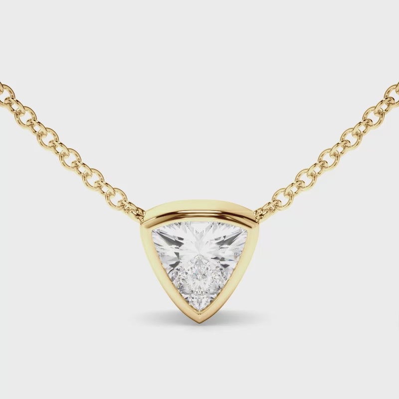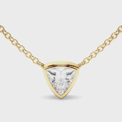 This elegant trilliant cut diamond bezel set solitaire necklet includes a 45cm 18ct gold chain. Exuding fluidity in its line work, and boasting an elegant silhouette, as with all the pieces in our Bespoke Collection, this piece is made especially for you.