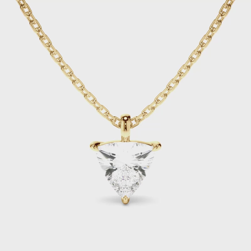 This elegant trilliant cut diamond solitaire necklet includes a 45cm 18ct gold chain. Exuding fluidity in its line work, and boasting an elegant silhouette, as with all the pieces in our Bespoke Collection, this piece is made especially for you.